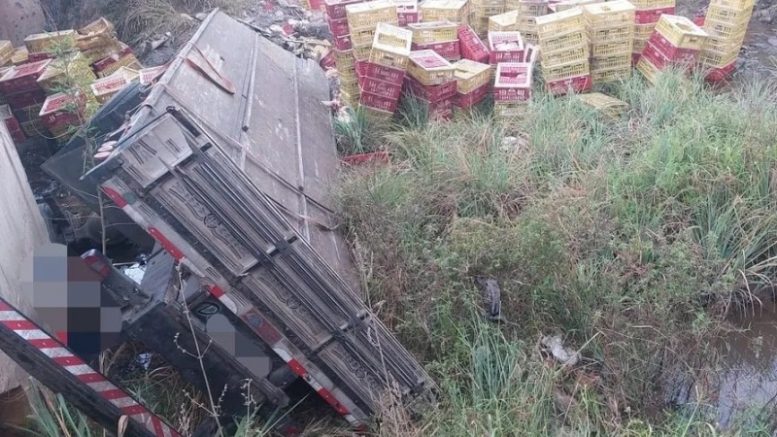 Na madrugada deste dia 28, na BR 232, km 121, um caminhão carregado de galinhas vivas tombou e matou o motorista do veiculo.