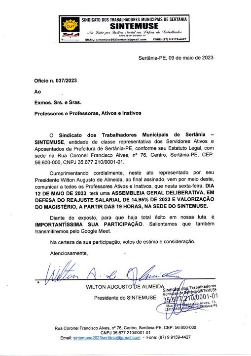 Voltando a convocação da assembleia, o SINTEMUSE conta com todos os serviores da educação nesse importante evento que direcionará os próximos passos na luta em prol do piso salarial.