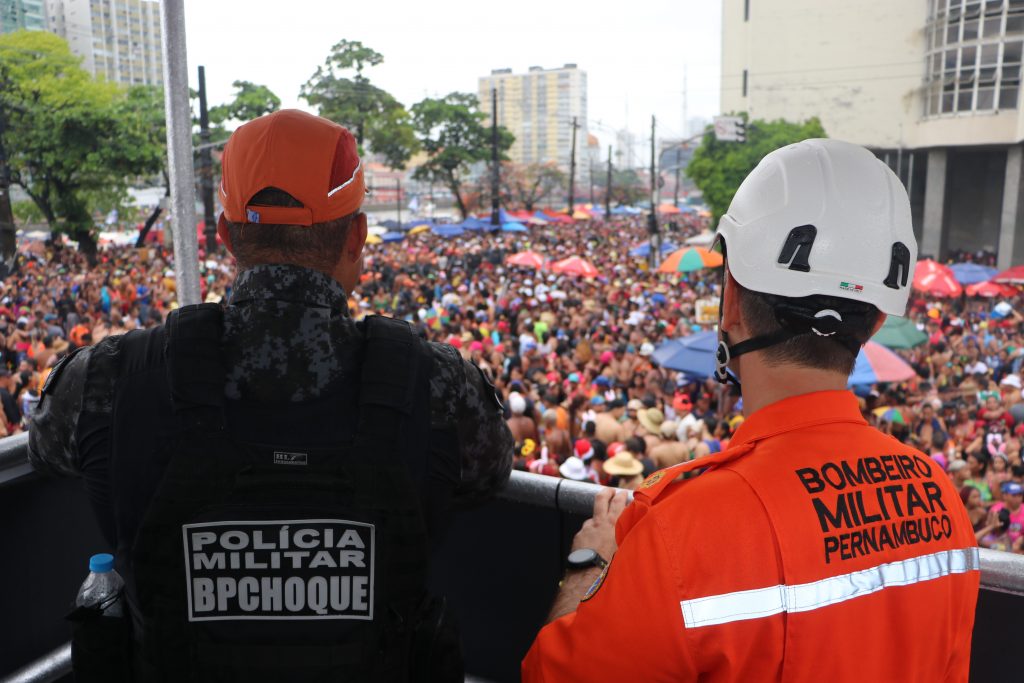 “Acorda, Recife, acorda! Levanta, o Carnaval começou, no bairro de São José”. Com muito mais policiamento nas ruas, o Galo da Madrugada chegou à sua 45ª edição com todo brilho e imponência que lhe é peculiar e arrastou foliões de todas as idades pelas ruas do centro do Recife, neste Sábado de Zé Pereira (10/02). Desde as primeiras horas da manhã, as forças de Segurança de Pernambuco estiveram a postos, assegurando uma festa mais tranquila para aproximadamente 2,5 milhões de pernambucanos e turistas que foram curtir o desfile do maior bloco carnavalesco do mundo, segundo o Guiness Book. A Secretaria de Defesa Social (SDS) empregou um efetivo total de 4.297 agentes no evento.Acompanhada dos secretários de Defesa Social, Alessandro Carvalho; da secretária executiva, Dominique de Castro Oliveira; e demais secretários estaduais e deputados, a governadora Raquel Lyra e a sua vice, Priscila Krause, estiveram presentes no tradicional café da manhã do Galo, no Forte das Cinco Pontas, e, em seguida, cumprimentaram o efetivo responsável pela segurança do bloco.O reforço no policiamento do Galo da Madrugada foi feito na terra e pelos ares. Dos 4.297 profissionais da SDS disponibilizados para a segurança dos foliões, 3.528 foram policiais militares, 510 bombeiros militares, 235 policiais civis, 16 policiais científicos e 8 profissionais da Corregedoria. A Polícia Militar garantiu o patrulhamento a pé, montado motorizado e de trânsito, enquanto quatro aeronaves do Grupamento Tático Aéreo (GTA) sobrevoaram toda a região.O Centro Integrado de Comando e  Controle contou com 450 câmeras monitorando de perto todo o percurso do Galo, mas também as ladeiras de Olinda. A novidade foi a utilização das bodycams em cada patrulha lançada nos 6,5 quilômetros de percurso do desfile e as câmeras de reconhecimento facial, que antes mesmo do desfile do Galo começar, às 8h10 já havia identificado, pelo Banco Nacional de Mandados de Prisão, um foragido da Justiça. A tecnologia mostrou que a imagem do homem de 46 anos, era compatível com a fotografia inclusa no Banco Nacional de Mandados de Prisão e confirmada a validação do mandado uma equipe de campo realizou a captura do homem, que foi conduzido à delegacia e permanecerá à disposição da Justiça.O corpo de Bombeiros realizou vistorias nos imóveis e nas vias por onde passa o bloco, a fim de evitar acidentes, antes e durante a preparação para o desfile. Ao longo do dia, houve interdição parcial de um camarote na avenida Sul, pois um dos pavimentos não atendia às especificações do projeto contra incêndio e pânico, e a interdição de uma edificação localizada na Avenida Rio Branco, por não ter projeto contra incêndio e pânico, nem o Atestado de Vistoria dos Bombeiros. Outro fator relevante foi ter sido classificado como risco 3 pela Defesa Civil do Recife. Além das vistorias de regularização e de fiscalização, as equipes dos bombeiros ficaram de prontidão para atendimentos de naturezas diversas, caso necessário, a exemplo de atendimento pré-hospitalar, combate à incêndio e salvamento nas modalidades terrestre e aquático (no bloco Galinha D’água).Já a Polícia Civil ativou os plantões nas Delegacias da Rio Branco, da Boa Vista e de Afogados, bem como garantiu reforço na Central de Plantões da Capital (Ceplanc) e na Delegacia de Plantão de Boa Viagem. A corporação também instalou duas Delegacias Móveis, na Rua da Aurora e Praça do Diário. Além disso, atuou no Fórum Thomaz de Aquino e no Metrorec, junto com o Juizado do Folião.  A Ouvidoria da SDS, por sua vez, disponibilizou um ônibus para atendimento à população na rua da Aurora, que funcionou das 8h às 15h.