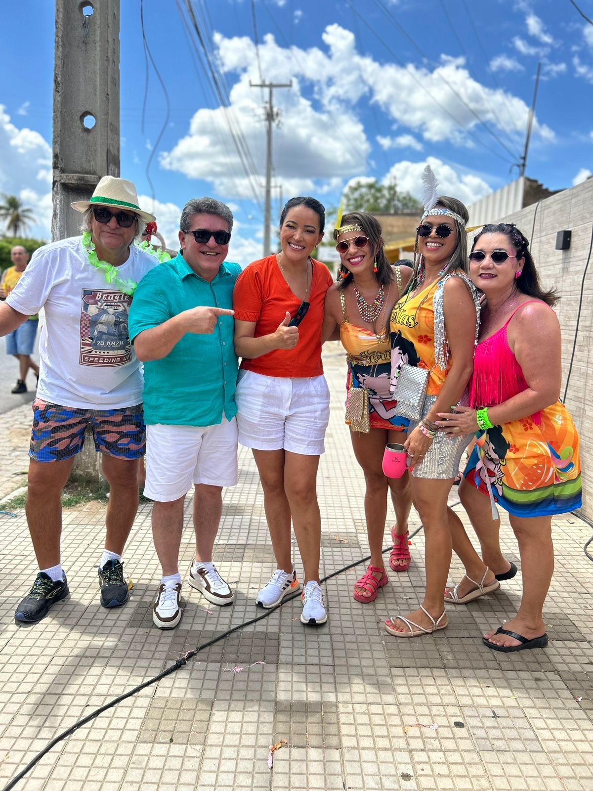 Todos os foliões de diversos blocos fizeram questão de abraçar e reverenciar o vereador Junhão Lins, a empresária Pollyanna Abreu e o deputado Estadual Luciano Duque.