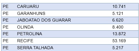 Confira abaixo o número de inscritos em cada um dos locais de prova do estado de Pernambuco: