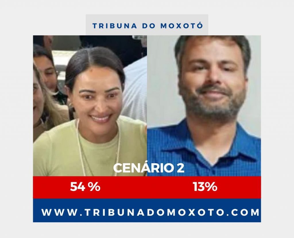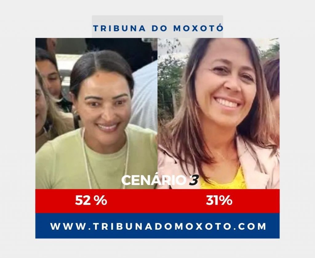 Num cenário entre Pollyana e Paulo Henrique, a empresária sobe para 54%, contra 13% do adversário. Brancos e nulos são 24% e não sabem ou não responderam são 9%.