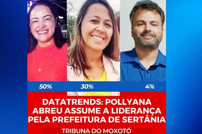 Segundo pesquisa do Instituto DataTrends divulgada nesta sexta-feira (29), a empresária tem hoje 50% da preferência do eleitorado, enquanto a pré-candidata governista, Rita Rodrigues, aparece em segundo lugar com 30%, seguida por Paulo Henrique, com 4%. Brancos e nulos são 7% e não sabem ou não responderam são 9%.