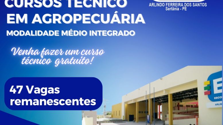 A Escola Técnica Estadual Arlindo Ferreira dos Santos em Sertânia está com as portas abertas para jovens visionários que desejam trilhar um caminho de sucesso na área agropecuária! O curso técnico em Agropecuária, na forma de Ensino Médio Integrado à Educação Profissional, é a oportunidade perfeita para aqueles que buscam uma formação completa e alinhada às demandas do mercado.