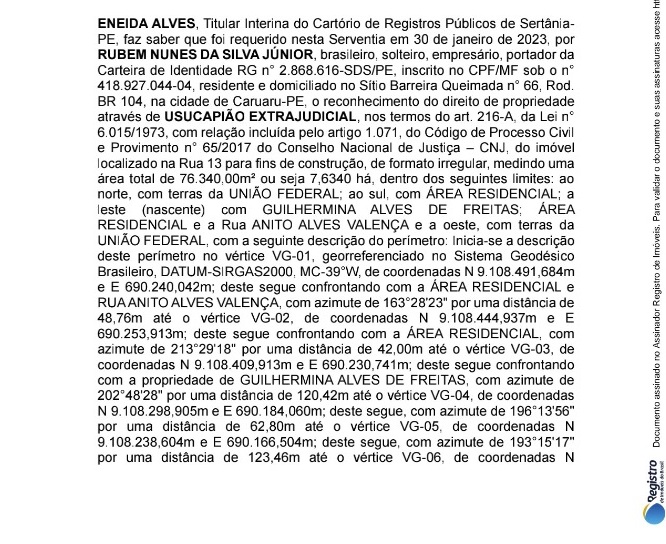 EDITAL DE NOTIFICAÇÃO DE USUCAPIÃO EXTRAJUDICIAL Postado Por: redação tribuna do moxotó 18 de maio de 2023 Comentários do Facebook