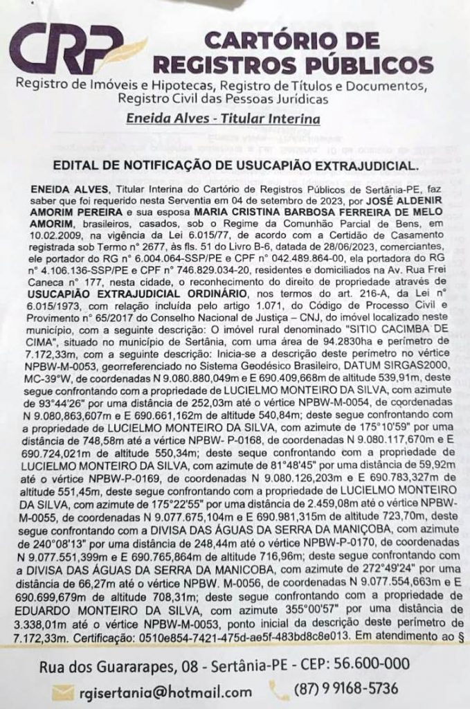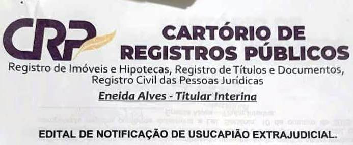 EDITAL DE NOTIFICAÇÃO DE USUCAPIÃO EXTRA JUDICIAL