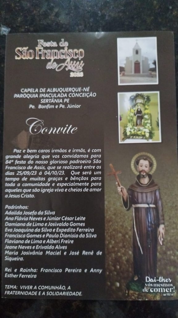 Este ano a secretaria de educação, apelidada pelos próprios professores, como CASA DA MALDADE, apesar de inúmeros pedidos, determinou que todos devem trabalhar no dia 4 de outubro, próxima quarta-feira, dia da procissão, quando do encerramento das festividades em alusão a São Francisco de Assis.