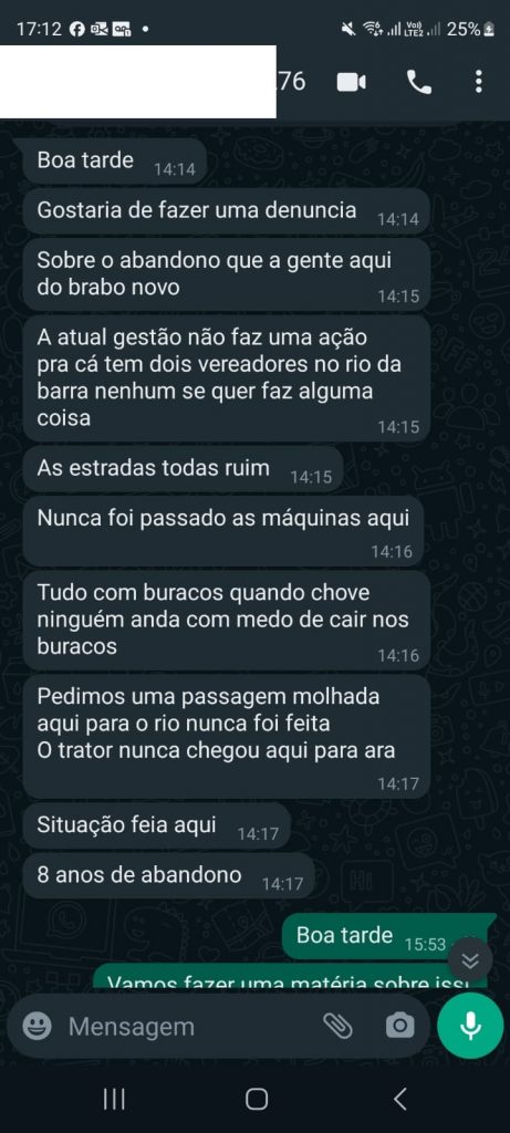 “São 8 anos sem eles olharem para gente, a gente fala, pede, mas não adianta. Dizem até que mandaram a maquina, só que não é verdade, essa maquina nunca chegou aqui. Um verdadeiro absurdo”, diz um dos moradores que nos enviou videos e fotos.