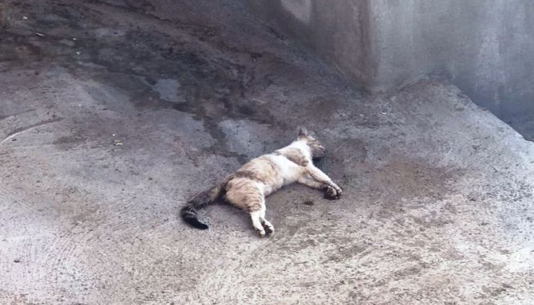 Segundo ela, seu gato estava morto no quintal, em seguida seu cachorro começou a apresentar sintomas de envenenamento e veio a óbito e depois encontrou seu outro gato morto no quintal da vizinha de fundo.