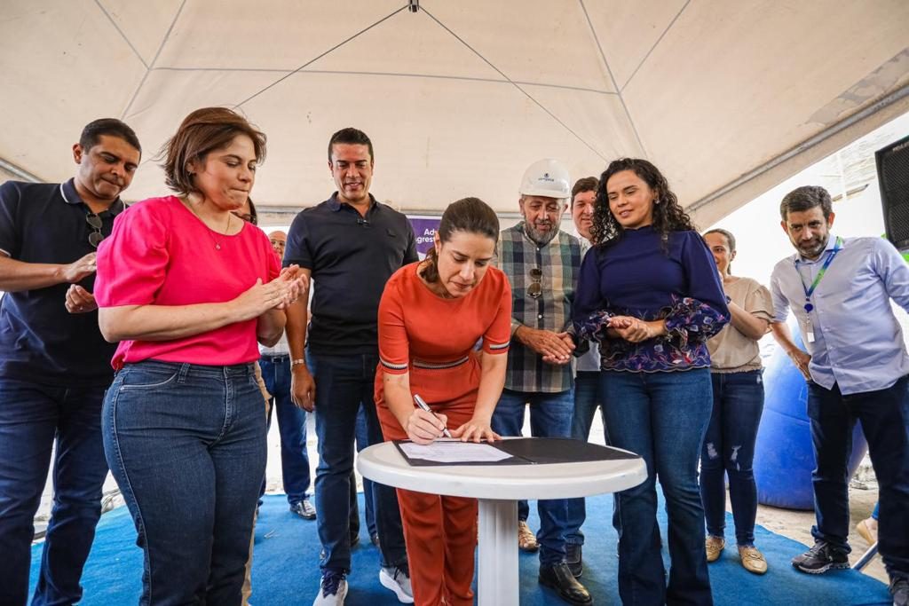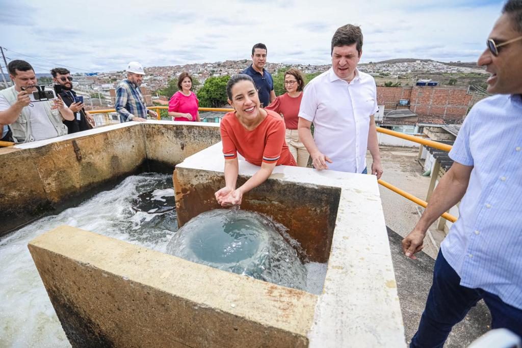 Durante o anúncio, a gestora estadual também acompanhou os testes da primeira etapa de obras da Adutora, que já possibilitou a chegada a Caruaru da água da Transposição