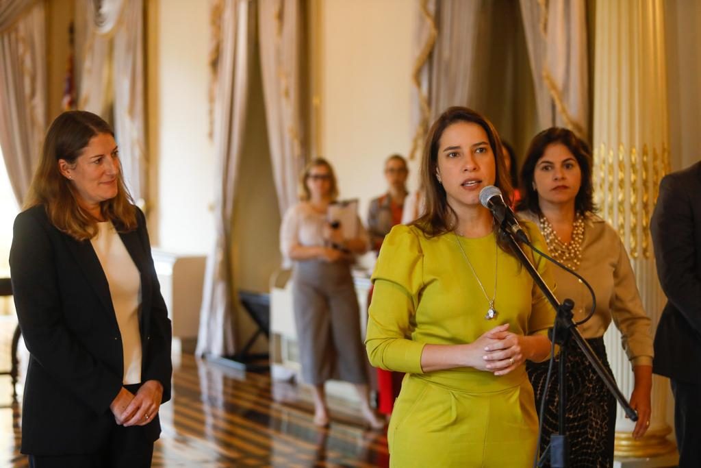 A governadora Raquel Lyra e a embaixadora do Reino Unido no Brasil, Stephanie Al-Qaq, assinaram um memorando de entendimento, nesta quarta-feira (28), no Palácio do Campo das Princesas. O acordo consolida a intenção de expandir parcerias em áreas de interesse mútuo, relacionadas a estratégias de descarbonização e mudanças climáticas, transição energética, agricultura sustentável, educação, comércio e investimento, e inovação e tecnologia. A vice-governadora Priscila Krause também participou do evento.