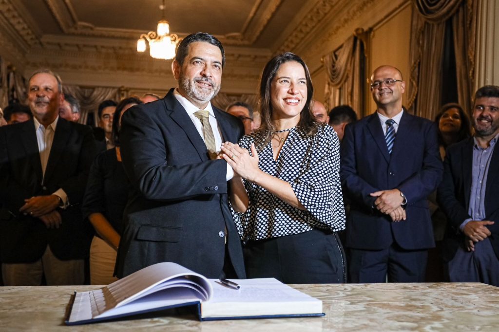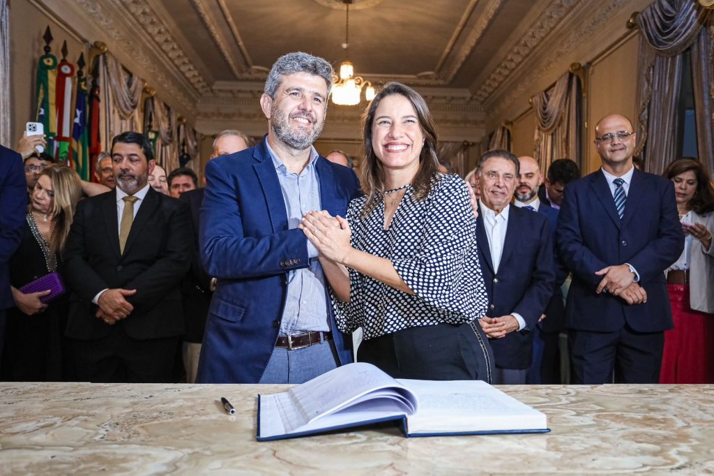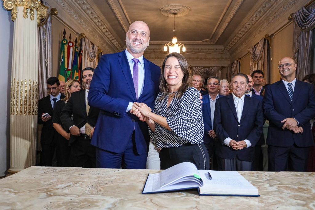 A governadora Raquel Lyra, ao lado da sua vice, Priscila Krause, assinou, nesta segunda-feira (19), no Palácio do Campo das Princesas, o termo de posse nomeando quatro novos secretários estaduais. Cícero Moraes assume o cargo de secretário de Desenvolvimento Agrário, Agricultura, Pecuária e Pesca; Rodrigo Ribeiro fica à frente da pasta de Projetos Estratégicos; Carlos Braga é o secretário de Assistência Social, Combate à Fome e Política sobre Drogas; e Paulo Paes assume a Secretaria de Administração Penitenciária e Ressocialização. Os últimos dois secretários passam a assumir as pastas que foram criadas a partir da reforma administrativa, sancionada pela chefe do Executivo estadual em janeiro deste ano.