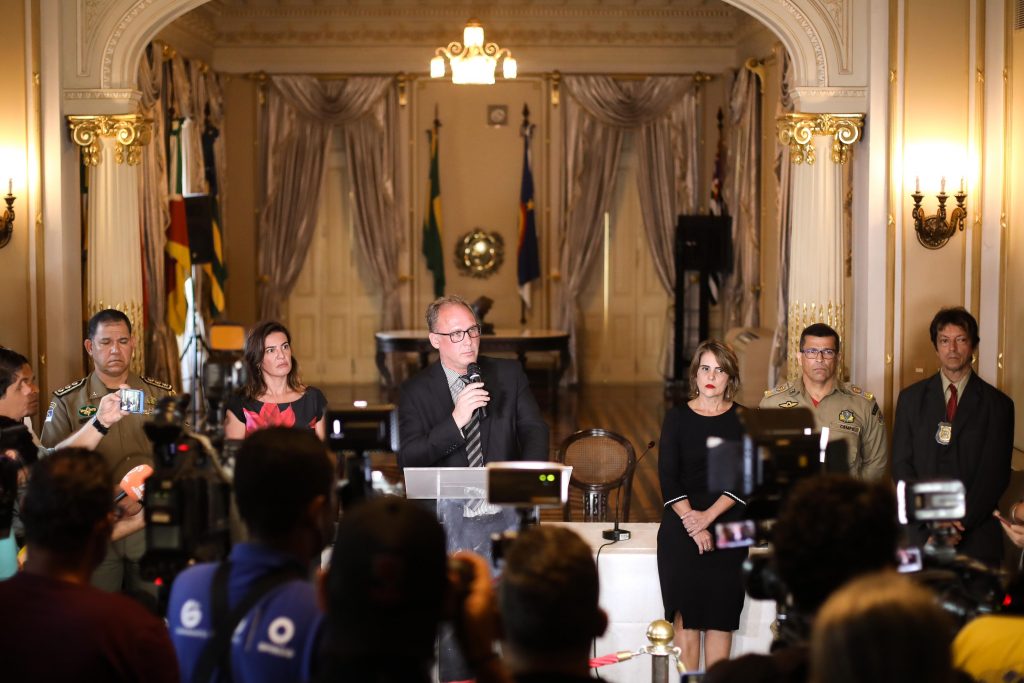 Também participaram do pronunciamento a delegada Simone Aguiar, chefe da Polícia Civil de Pernambuco, o coronel Marcos Ramalho, sub-comandante da Polícia Militar, o comandante-geral do Corpo de Bombeiros, coronel Luciano Fonsêca, e o gerente-geral da Polícia Científica, Fernando Benevides.