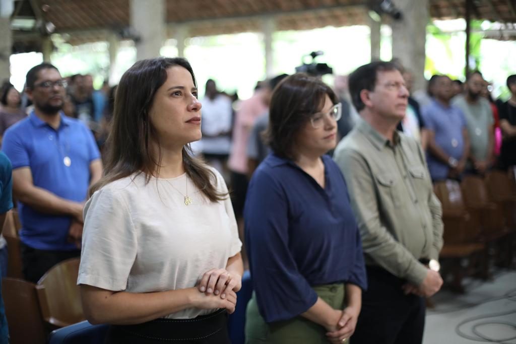 A governadora Raquel Lyra e a vice-governadora Priscila Krause visitaram a sede da Comunidade Católica Eis Aí Tua Mãe – Obra de Maria, em São Lourenço da Mata, na manhã desta desta quarta-feira (3). As gestoras foram recebidas pelo fundador da comunidade, Gilberto Gomes Barbosa, e acompanharam um momento de evangelização durante a Formação Geral de 2024 dos missionários da instituição. Após participarem das orações e cumprimentarem os membros da missão, Raquel e Priscila conheceram os espaços da sede da Obra de Maria.