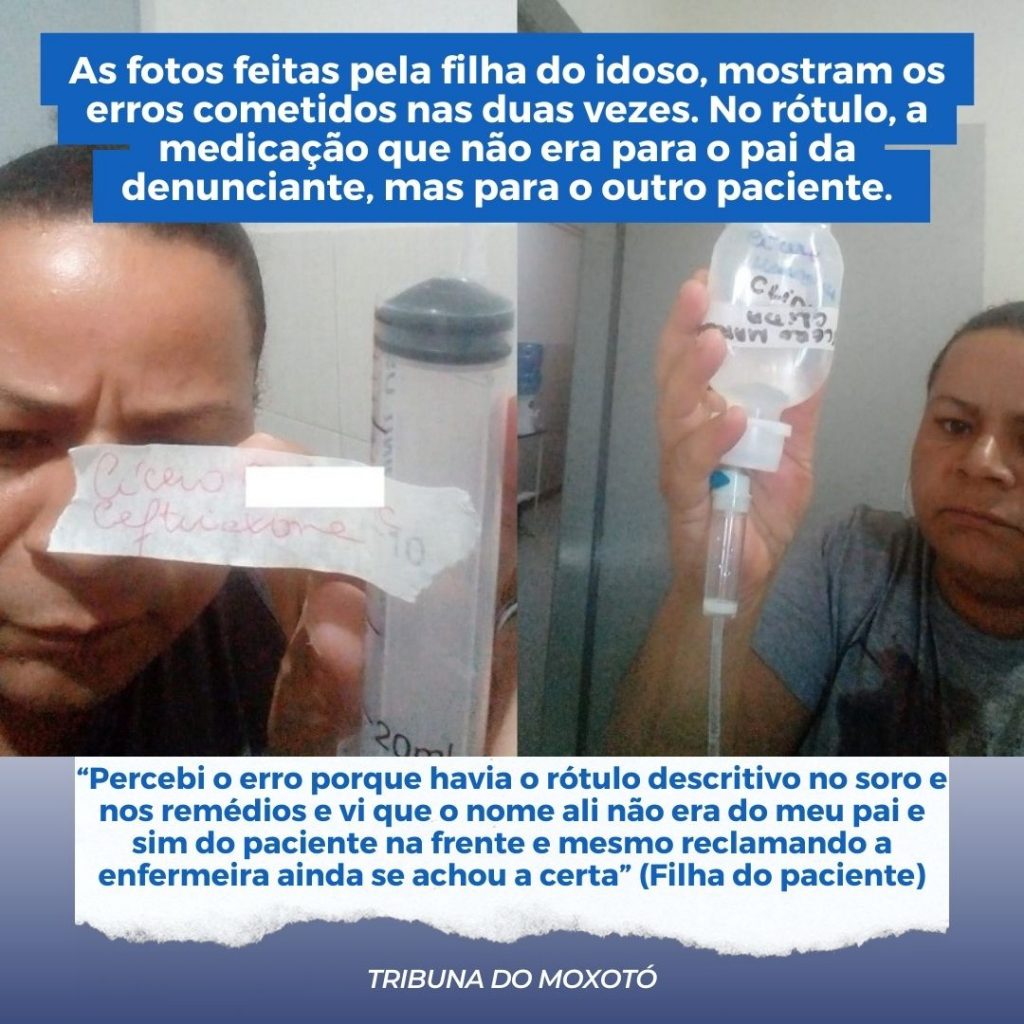“Percebi o erro porque havia o rótulo descritivo no soro e nos remédios e vi que o nome ali não era do meu pai e sim do paciente na frente e mesmo reclamando a enfermeira ainda se achou a certa, reclamei com a direção do hospital , mas não fui ouvida. Isso não é a primeira vez, durante esta semana iam medicar meu pai com dipirona e mesmo sabendo que ele é alérgico, só não deram porque eu reclamei, mas vi que aquele dipirona não era para o meu pai, iam dar errado de novo e se não estivesse ali hein??”, denuncia a filha indignada com tanta imprudência e falta de cuidado.