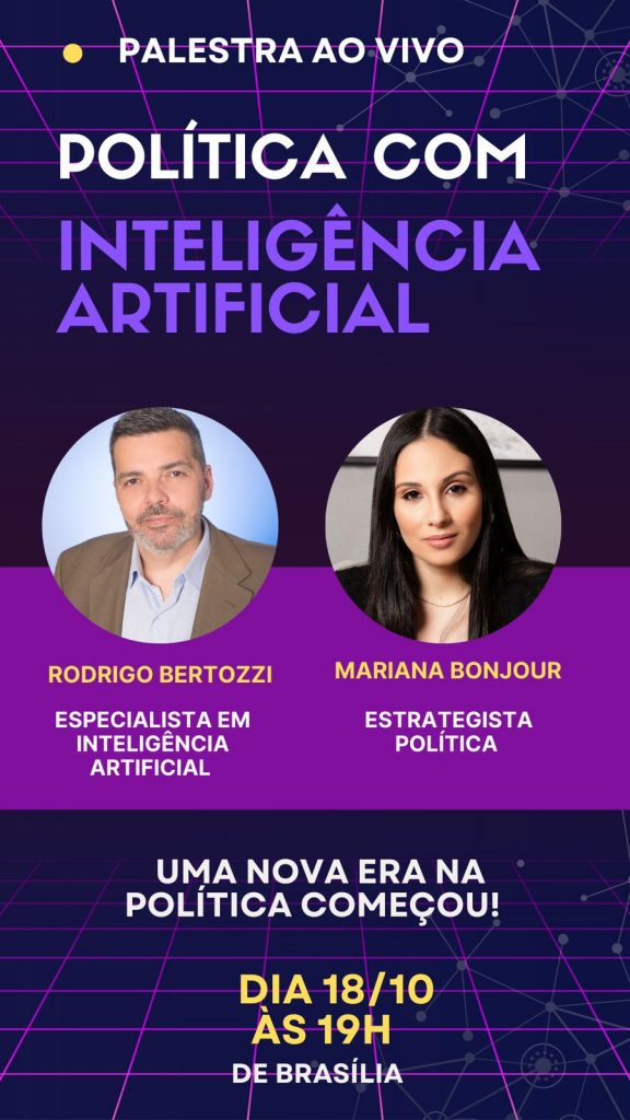 O primeiro evento acontece na próxima quarta-feira (18/10), às 19h, quando o especialista em Inteligência Artificial, Rodrigo Bertozzi, e a estrategista política, Mariana Bonjour, conduzirão uma palestra virtual explorando as interseções da IA com o marketing e as campanhas eleitorais. O evento é gratuito e as inscrições devem ser feitas no site https://sun.eduzz.com/2116011.