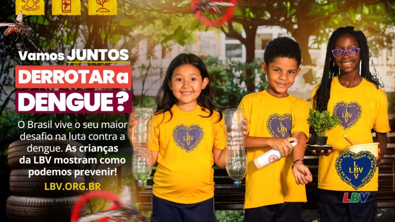 A Legião da Boa Vontade (LBV) lança a campanha “Diga Sim à Prevenção” para envolver ativamente a população na luta contra a dengue e intensifica seus esforços educativos em suas Escolas e Centros Comunitários em todo o país, visando conscientizar crianças e adolescentes sobre a importância da prevenção da doença.