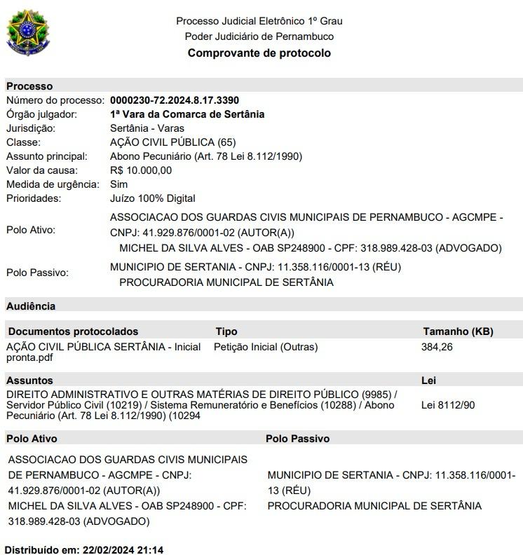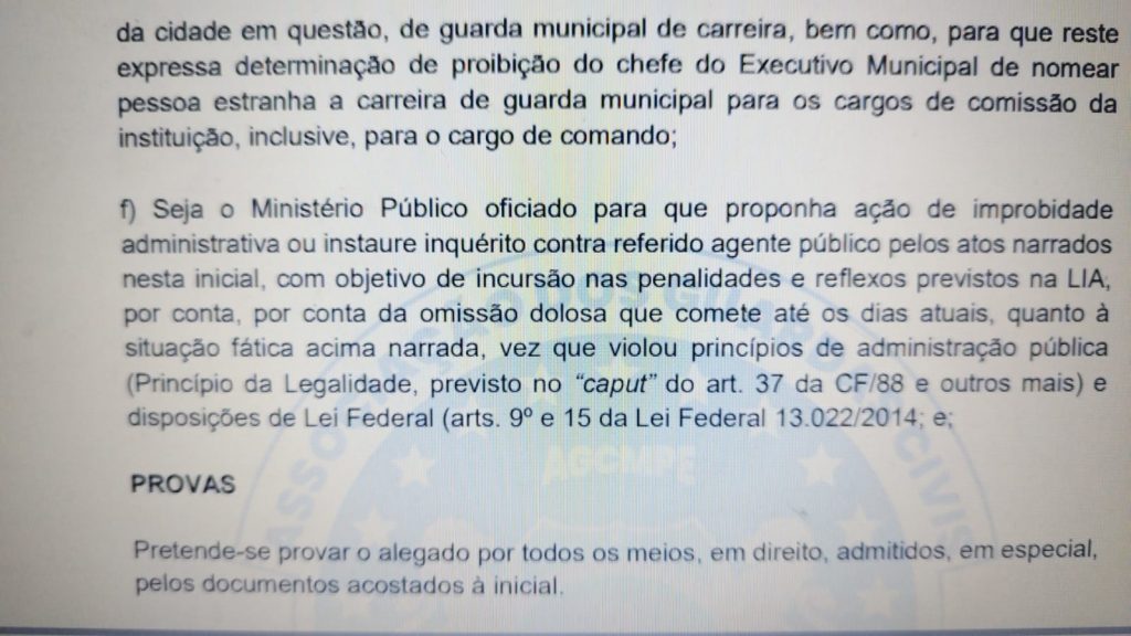 PARTE DO DA AÇÃO CIVIL PÚBLICA MOVIDA CONTRA O PREFEITO ÂNGELO FERREIRA, PELA ASSOCIAÇÃO DA GUARDA CIVIL MUNICIPAL DE PERNAMBUCO