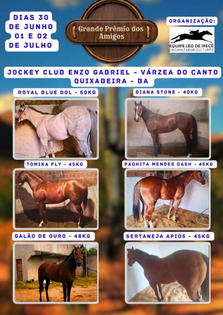 Nos dias 30 de junho e 1 e 2 de julho, ocorreu no Jockey Club Enzo Gabriel, na Várzea do Canto Quixabeira, no Estado da Bahia, um grande torneio denominado “Grande Prêmio dos Amigos”, com a participação de cavalos e éguas de vários Estados do Brasil e representando com êxito e força a Fazenda Figueira de Sertânia, a égua PAQUITA NUNES DASH.