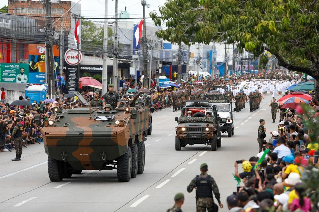 A governadora Raquel Lyra participou, nesta quinta-feira (7), das celebrações dos 201 anos da Independência do Brasil. O desfile cívico-militar aconteceu na Avenida Marechal Mascarenhas de Moraes, no bairro da Imbiribeira, Zona Sul do Recife. Na ocasião, após realizar a revista da tropa e receber as honras militares, a gestora acompanhou toda a celebração ao lado da vice-governadora Priscila Krause, do secretário-chefe da Casa Militar, coronel Hercílio Mamede, e do major-brigadeiro do ar João Campos Ferreira Filho, comandante do II Comando Aéreo Regional (Comar).