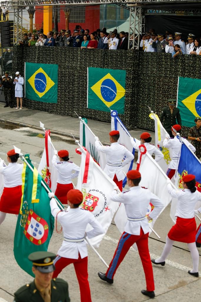 “É uma honra poder estar aqui em um dia simbólico como este, da Independência do Brasil, resgatando a nossa história, a nossa tradição de Pernambuco sempre estar à frente das lutas libertárias do Brasil. Com muita alegria posso viver esse momento sendo a primeira mulher governadora do Estado”, disse Raquel Lyra.