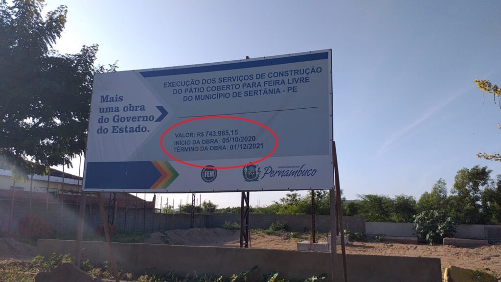VEJA SERTANIENSE A OBRA DO PÁTIO DA FEIRA COMEÇOU NO DIA 05 DE OUTUBRO DE 2020 E TINHA UMA PREVISÃO PARA O TÉRMINO PARA O DIA 1º DE DEZEMBRO DE 2021. ATÉ HOJE EMPURRAM A SUA CONCLUSÃO PARA O PRÓXIMO ANO, ANO DE ELEIÇÕES COM UM CUSTO MUITO MAIS ALTO DO QUE MOSTRA A PLACA. INFELIZMENTE PARECE QUE A FISCALIZAÇÃO EM SERTÂNIA QUASE NÃO EXISTE.
