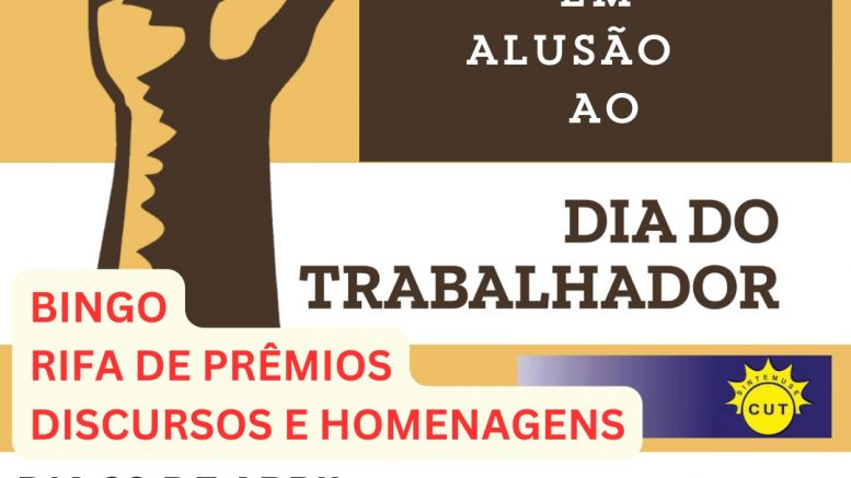 O Sindicato dos Trabalhadores da Prefeitura de Sertânia realiza neste sábado um ato em alusão ao Dia do Trabalhador de 2023. Neste evento será realizado um bingo e rifa com vários prêmios para os sindicalizados. Na oportunidade também haverá apresentação cultural e discursos em homenagem aos trabalhadores. Salientamos que este momento será muito importante para refletir sobre a situação atual de luta pelos direitos negados aos trabalhadores.
