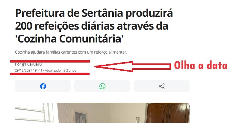 Em dezembro de 2021, o atual governo municipal assinava o termo de aceite para a implantação da cozinha comunitária em Sertânia (ver matéria), depois disso o então governo de Pernambuco, anunciou com pompas a implantação da cozinha comunitária em Sertânia (ver matéria).