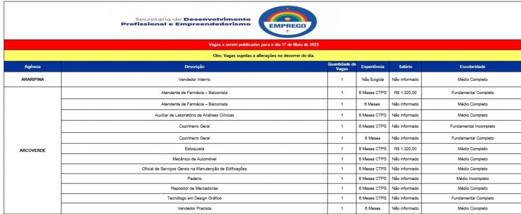 Várias oportunidades de emprego para você em Arcoverde e em toda região do Estado de Pernambuco. Veja as oportunidades: