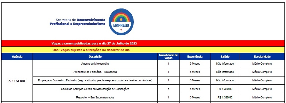 OPORTUNIDADE DE EMPREGO EM ARCOVERDE E REGIÃO. VEJA O QUADRO DE VAGAS