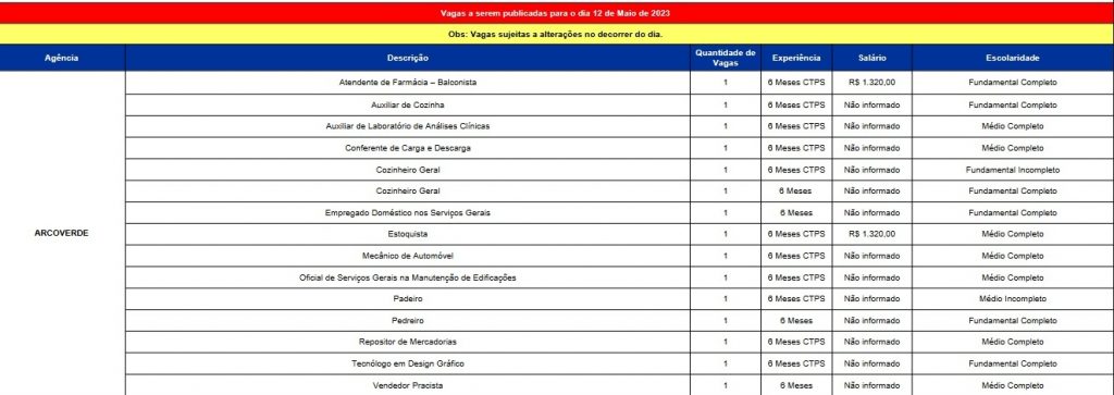 Para acompanhar as vagas de emprego em Arcoverde e em outras regiões do Estado a vagas disponíveis, basta clicar abaixo e baixar o arquivo.