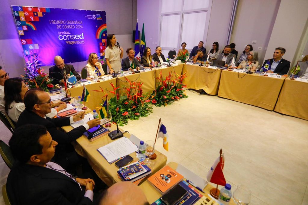 A governadora Raquel Lyra comandou, nesta quinta-feira (14), a abertura da primeira reunião ordinária do Conselho Nacional de Secretários de Educação (Consed) em 2024. O encontro, realizado em Porto de Galinhas, no município do Ipojuca, reuniu secretários estaduais de Educação de todo o país para tratar das definições e posicionamentos sobre as mudanças no Novo Ensino Médio, a lei do piso do magistério e o novo Plano Nacional de Educação.