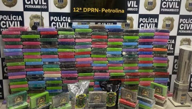 A Polícia Civil apreendeu na última terça-feira (13), em Serra Talhada, Sertão de Pernambuco quase 300kg de cocaína. As investigações estavam em andamento há 10 meses e apontaram que o município do Sertão funcionava como um centro de distribuição de drogas para vários locais do Nordeste, incluindo a região do Vale do São Francisco e a cidade do Recife.