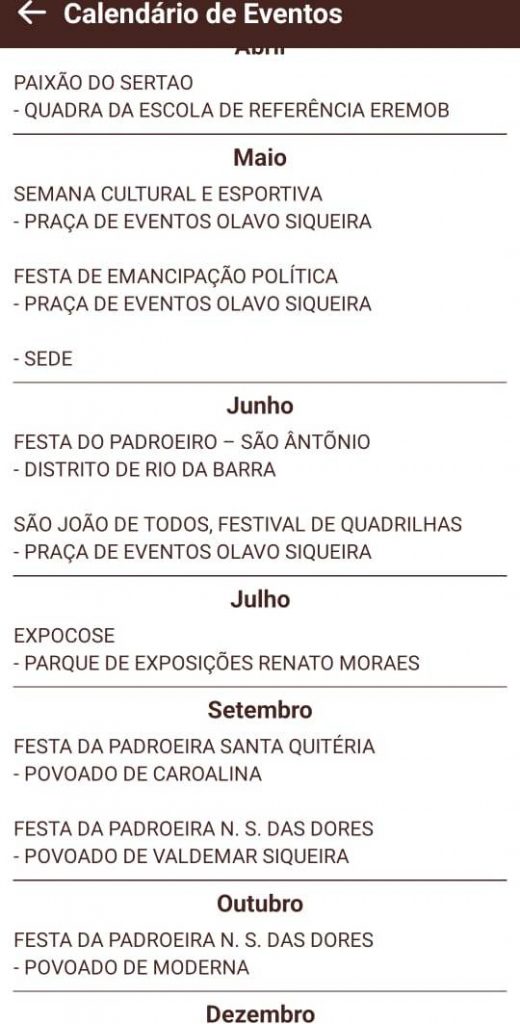 VEJA O CALENDÁRIO DE EVENTOS CULTURIAIS ACIMA QUE VOCÊ ENCONTRA NO APLICATIVO CRIADO PELA PREFEITURA DE SERTÂNIA