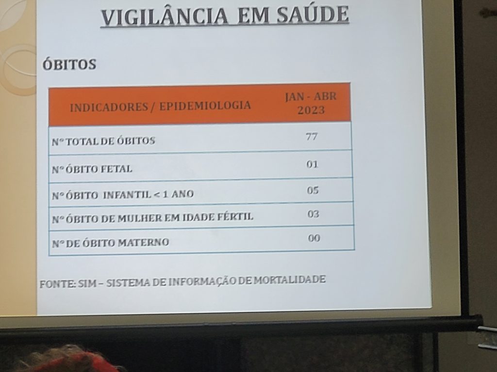 OS NÚMEROS DE ÓBITOS EM SERTÂNIA – OBSERVE QUE TIVEMOS UMA MORTE FETAL E 5 ÓBITOS INFANTINS E 03 MORTES DE MULHRES EM IDADE FÉRTIL E 77 MORTES EM TRÊS MESES. SEGUNDO A SECRETÁRIA, SERTÂNIA REGISTRA EM MÉDIA 22 MORTES PPOR MÊS.