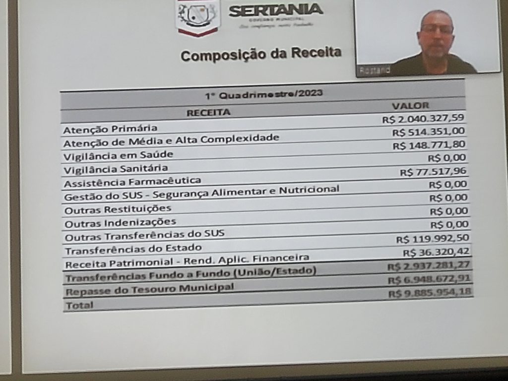 Na ocasião em que foi discutido as questões dos Postos de Saude Básica da Familia que serão criados, principalmente na zona rural, a secretaria de saúde do município de Sertânia apresentou neste memso evento julho a prestação de contas de janeiro a abril de 2023 com a presença de vários profissionais da área, bem como agentes de saúde e vereadores.