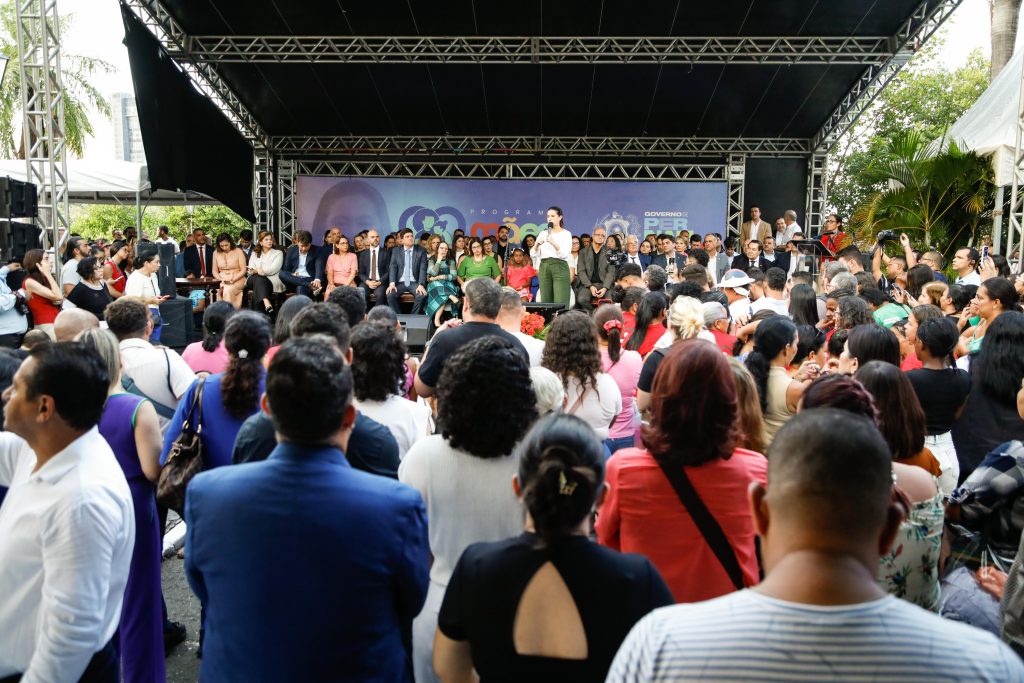Numa solenidade marcada pela presença de mulheres e crianças de todo Estado, a governadora Raquel Lyra lançou, nesta segunda-feira (25), nos jardins do Palácio do Campo das Princesas, o Mães de Pernambuco, o maior programa de transferência de renda e combate à fome do Norte e Nordeste. Durante a cerimônia, ao lado da vice-governadora Priscila Krause, prefeitos e prefeitas de diversas cidades pernambucanas, parlamentares e lideranças, Raquel Lyra anunciou o auxílio de R$ 300 por mês a 100 mil mulheres que vivem em situação extrema de vulnerabilidade social e têm filhos com até seis anos de idade.