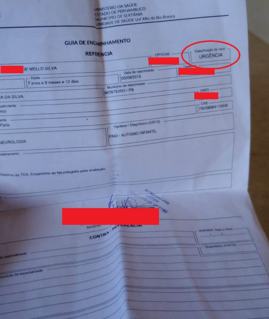 GUIA DE ENCAMINHAMENTO DE URGÊNCIA DE UMA CRIANÇA DE 7 ANOS AUTISTA PARA SER ATENDIDA POR UM NEUROLOGISTA E NÃO CONSEGUE HA 7 MESES. DESCASO COM A SAÚDE É FLAGRANTE E NÃO HÁ PROPAGANDA QUE SOBREPONHA ISSO