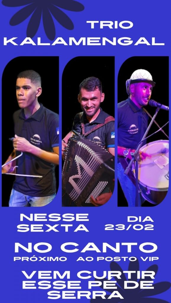 O pé de serra será animado pelo trio Kalamengal, que vai levar no seu repertório o que tem de melhor da canção regional nordestino, com muito forró.