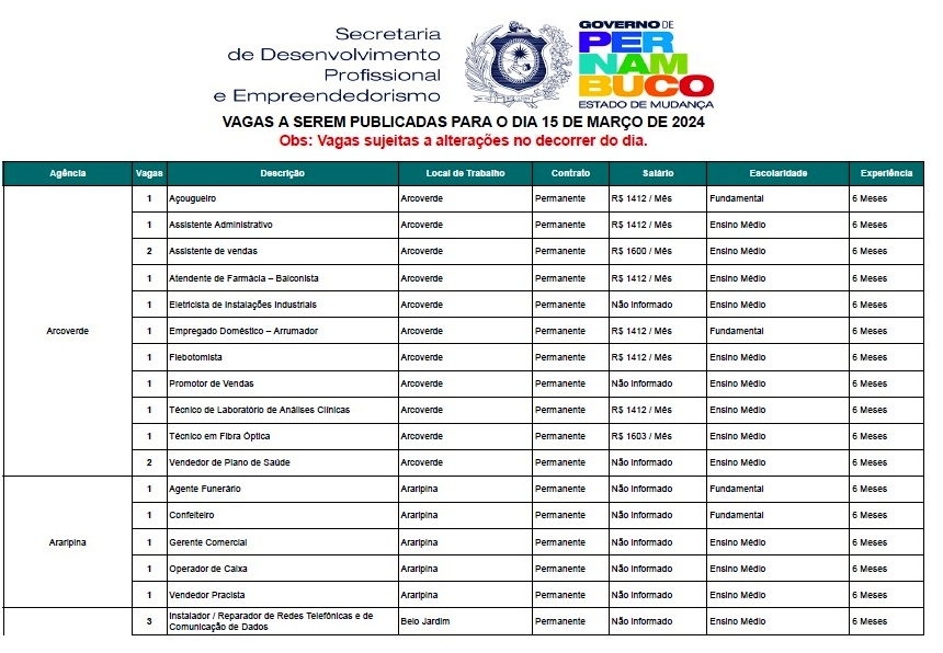 VAGA DE EMPREGO EM ARCOVERDE E REGIÃO PARA ESTA SEXTA(15) Postado Por: redação tribuna do moxotó 14 de março de 2024 Oportunidade de emprego em Arcoverde e todas as regiões de Pernambuco. Veja: Quadro de Vagas 15.03.2024 Comentários do Facebook