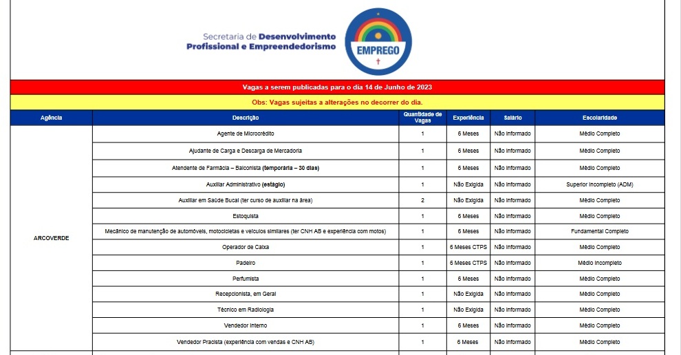 Abaixo você acompanha as vagas existentes em Arcoverde: